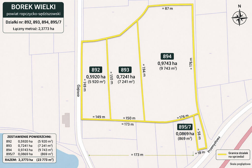 - dodatkowo działka drogowa 895/7 zapewniająca dojazd